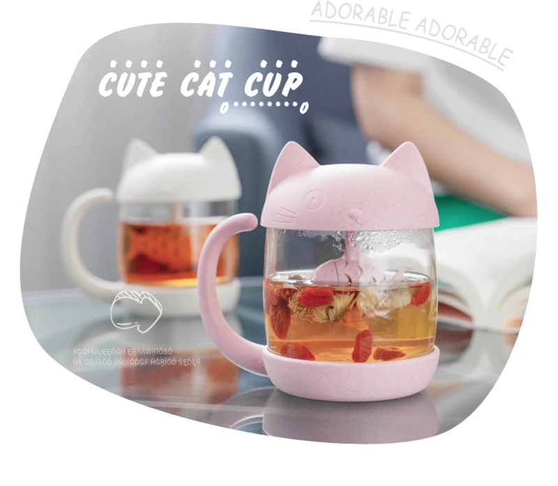9) 420 ml Cute Cat szklany kubek z filtrem do kawy herbaty